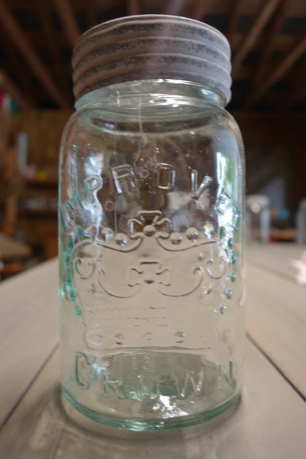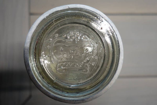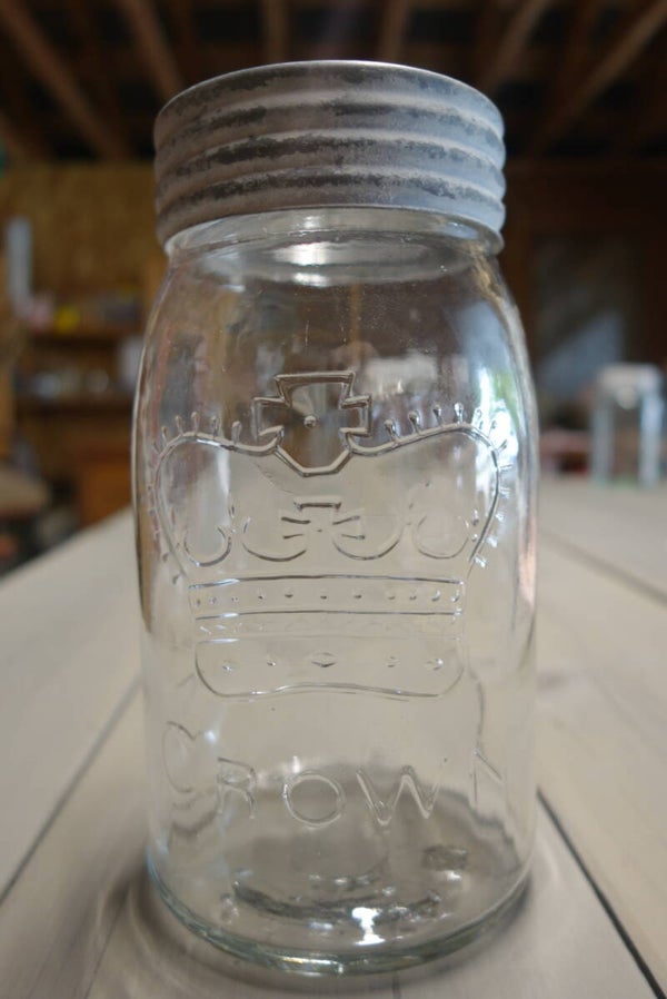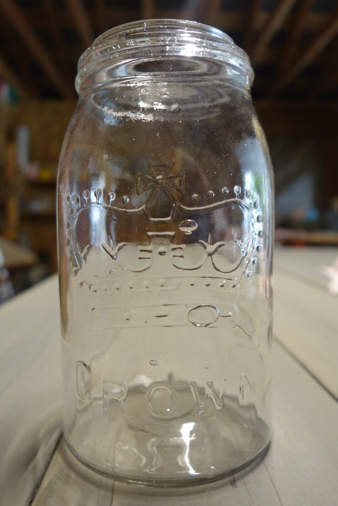 Pot de marque CROWN, parfait pour y ranger vos produits en vrac. Avec couvercle en verre.